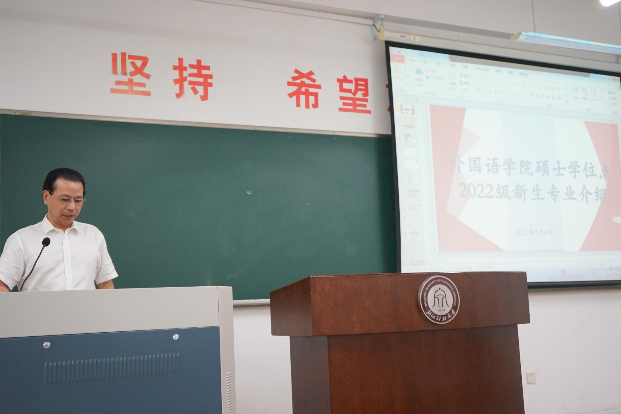 黎昌抱院长代表学院欢迎同学们加入浙财外语的大家庭,他从学院发展、组织结构、课程设置、师资队伍、教学科研、就业前景等几个方面向新生们介绍了学院情况,叮嘱同学们要尽快调整状态,适应研究生生活;充分了解专业,做到常学常思。黎院长还强调了外语人的使命,希望同学们以语为媒,讲述好有广度的中国故事;以文载道,讲述好有深度的中国故事;以心相交,讲述好有温度的中国故事;以文传声,塑造好有亲和力的中国形象;以文化人,传播好可爱可敬的中国精神。