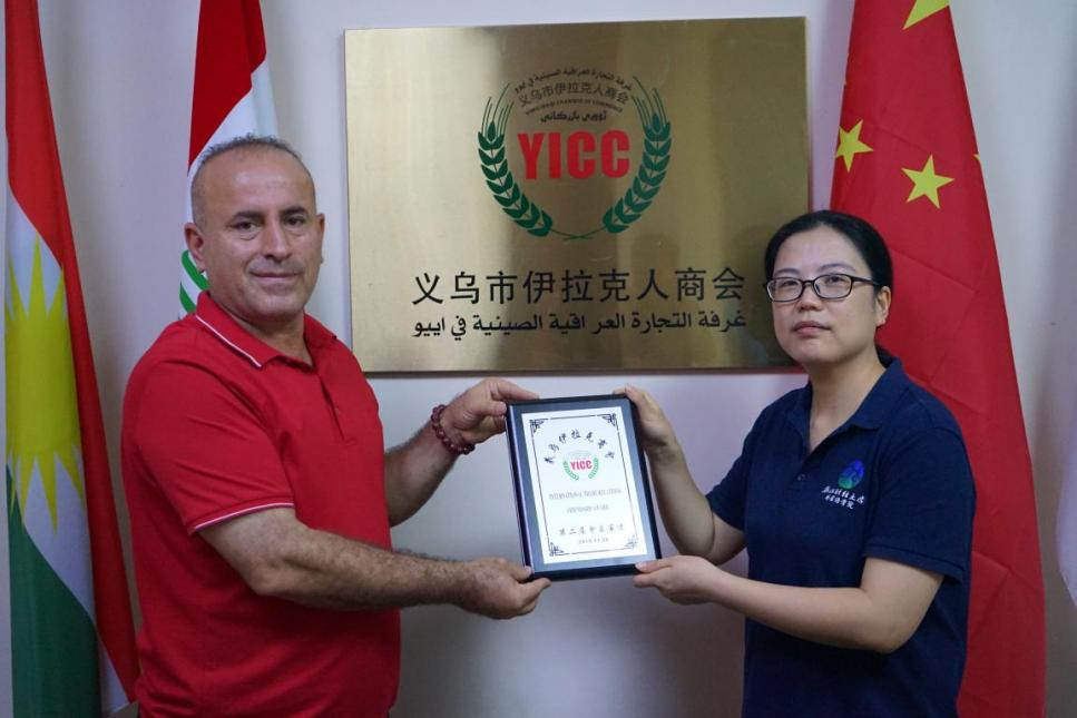 会谈后,双方在义乌伊拉克商会办公室举行授牌仪式。