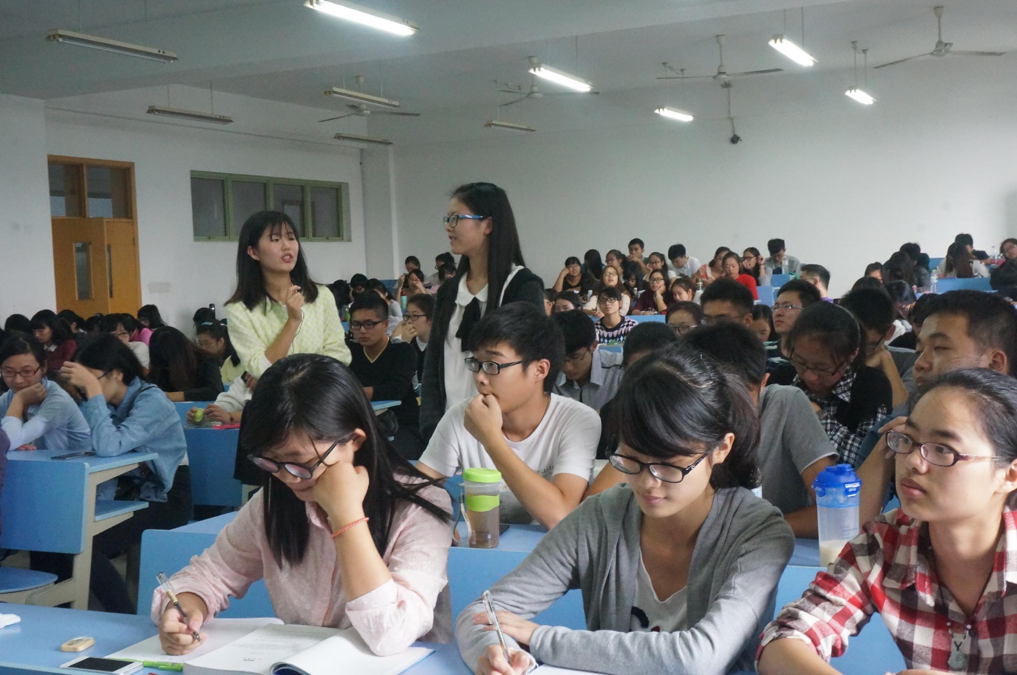 在轻松欢快的气氛中课堂接近了尾声,吴晨向在场同学提出了“语言环境与学习英语的关系”、“英语角、美剧真的能提高口语和听力的能力吗”等几个问题留给大家思考。关于英语口语的学习,她热切的向大家呼吁“Now!Today!Time to Change!”,并祝愿大家在今后的学习中取得进步。