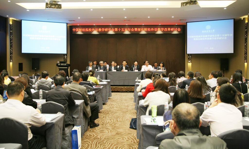 10月24日至25日,中国财经院校教学研究会第十五届年会暨财经外语教学改革研讨会在西南财经大学召开。来自全国50余所财经院校的近120名代表参加了本次年会。我院章汝雯、邵斌、余清萍三位老师参加此次年会。