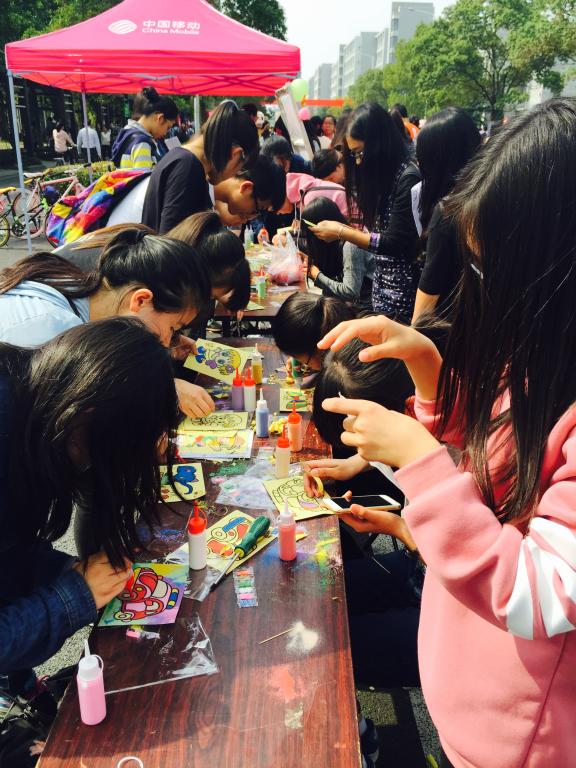 指尖上的艺术——一沙一世界活动于10月22日在文化长廊面向全校学生展开。许多同学踊跃参加,自己动手制作沙画。那充满童真童趣的沙画图案和色彩丰富细腻的彩砂,让大家仿佛又回到了童年快乐的时光,脸上都洋溢着烂漫的笑容。制作好的沙画,或被同学们带走或拍照留念或将作品回赠于阳光公益中心作纪念。活动现场,热闹非凡。无论是绘画还是沙画,都有着极好的纾解情绪的作用。沙画的极致——藏传佛教的坛城,以艺术的方式道明:繁华世界,不过一掬细沙;“能够轻易地拿起,也能够轻松地放下”的道理。