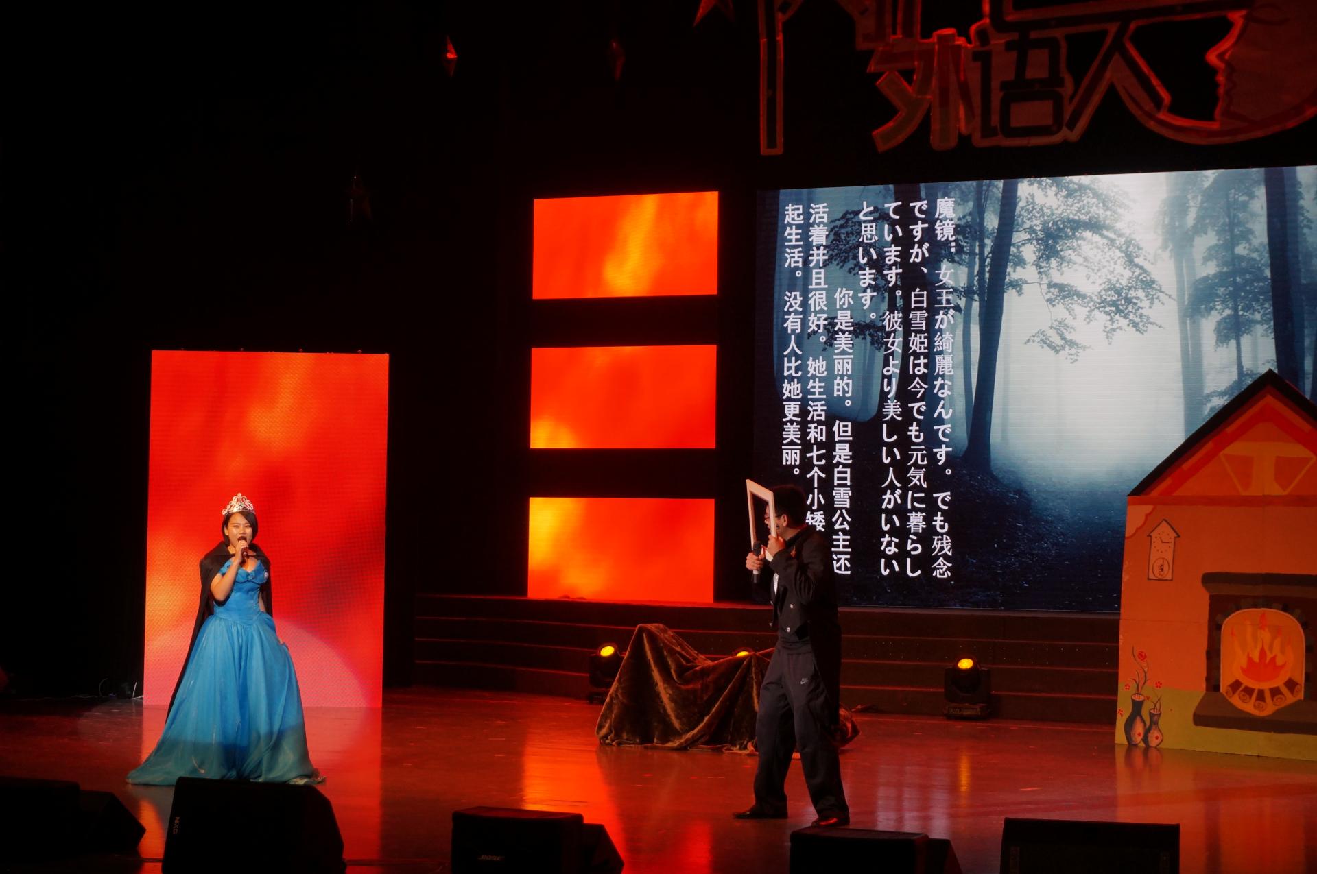 演出充分展现外语特色,首次采用中、英、日、法四语联合主持;节目编排上,既有学生节目,如多语种联唱《环球巴士八号音线》、舞蹈串烧《舞动青春》和英日语对白的经典话剧《白雪公主》等;又有教师表演,如郭峰老师的独唱《牡丹之歌》,邵斌老师的书法秀《登鹳雀楼》,以及教师集体走秀《多彩人生》等,甚至教师们的下一代——“小小外语人”也登台亮相,掀起了现场高潮;还有校友节目,优秀校友抒发对母院的深情,歌曲联唱《灵动青春风》等。