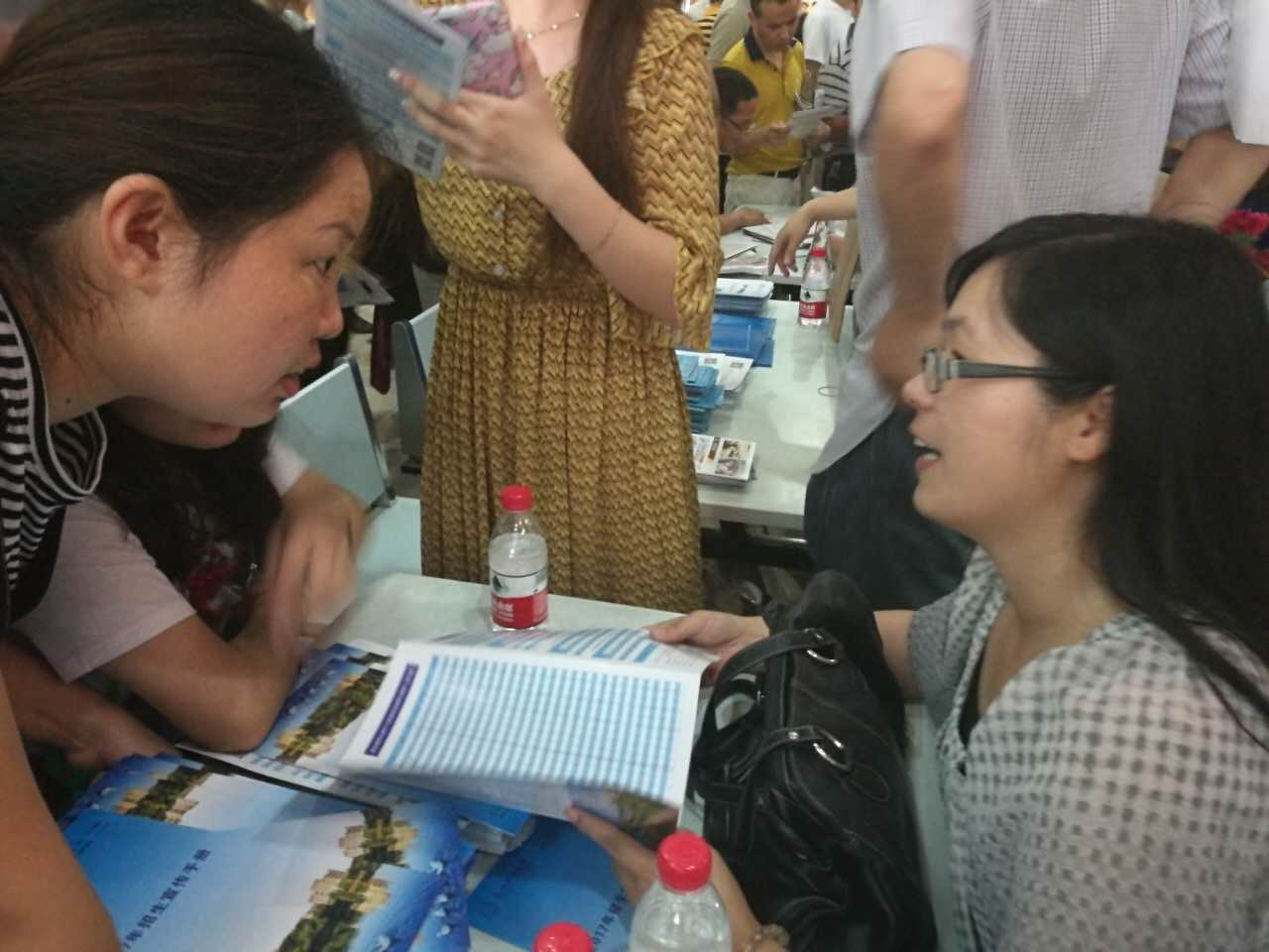 2017年6月18日,外国语学院陈淑莹、张燕文、黄莹、谢琳四位老师赴金华开展我校2017年的招生宣传工作。在浙江师范大学,4位老师向广大考生及家长介绍了我校的招生计划、学科专业特色、毕业生就业、国际交流学习等方面的情况,并热心细致地解答考生、家长的疑问,鼓励考生填报我校,鼓励一段线以上的考生报考我校,尽量做到专业全覆盖。获得热烈反响。