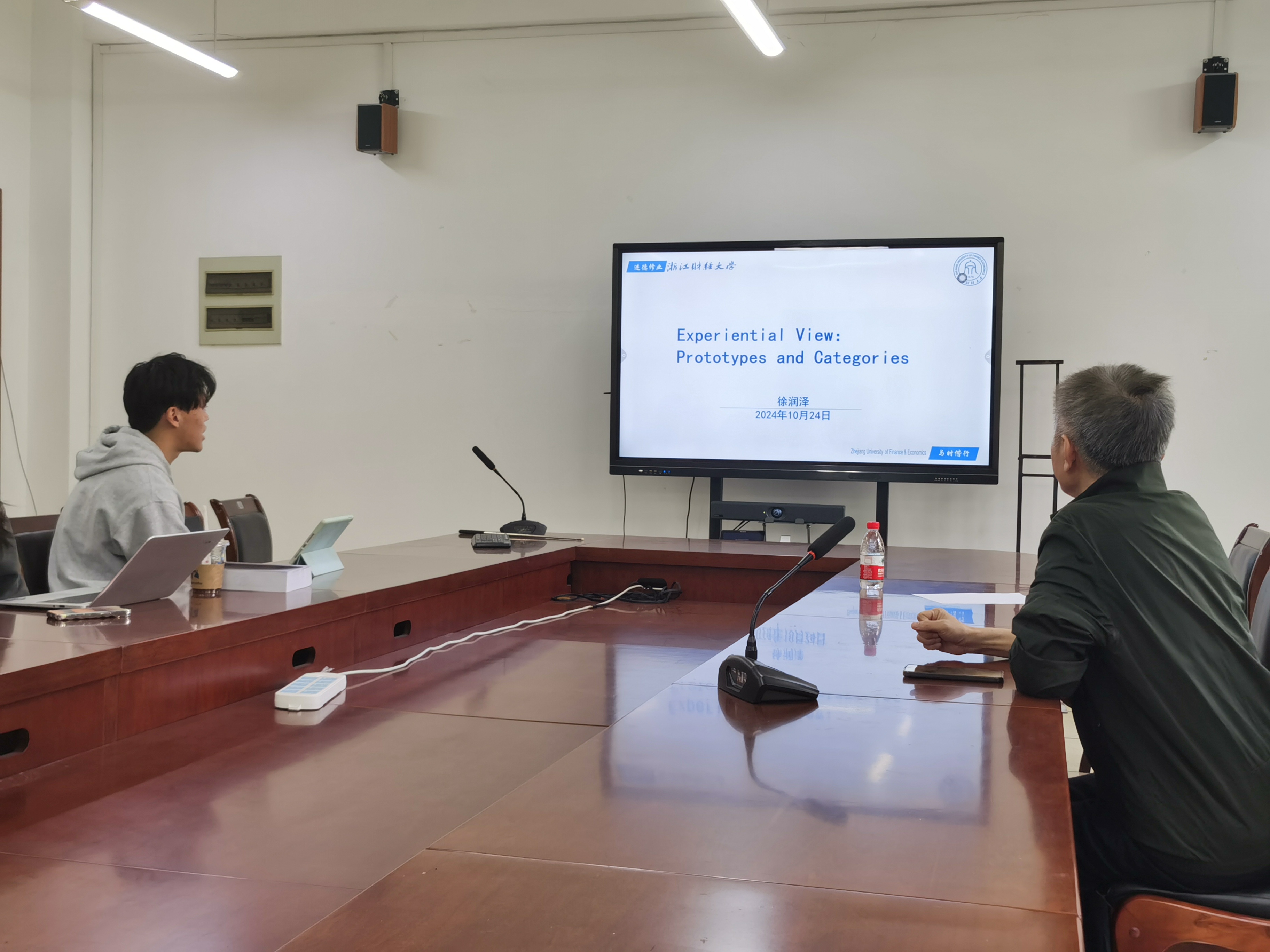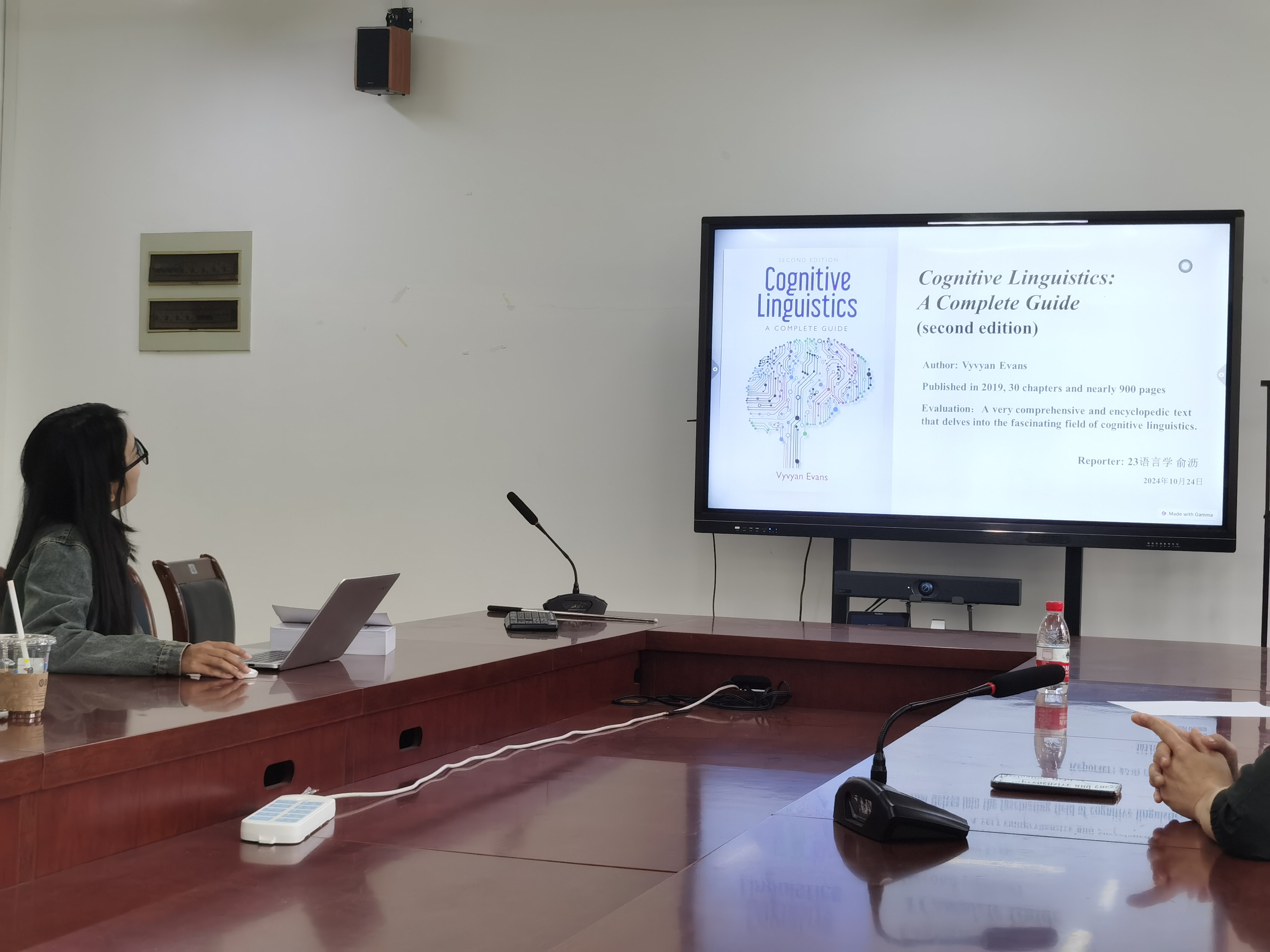 2024年10月24日,徐润泽作了主题为“Experiential view: prototypes and categories”的读书报告,曹道根老师进行点评交流。该读书报告会以“原型和范畴化及范畴层次”为主题,详细介绍了认知语言学中经验论视角下的原型理论以及范畴化等相关概念,以及范畴层次的分类。在交流讨论环节中,曹道根老师针对该读书报告进行了专业点评,并提出了修改意见以望参考。最终读书报告在老师及同学们的热烈讨论中圆满结束。
