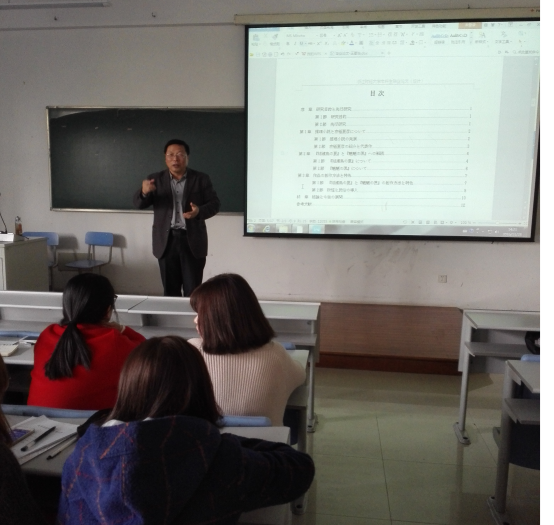 交流会上,朱赛利老师从形象、意象的历史追溯,作家作品的独特意象,及作品背景等方面分析了如何解读文学作品。朱老师还从形式主义、结构主义、后现代主义、女性主义等方面介绍了文学作品解读的相关理论。方小赟老师从语言学的角度为大家讲解了课题的设定、先行研究的调查、数据的收集和分析、论文的执笔等,并介绍了语言研究的方法论和理论框架。刘学老师就论文的设计、撰写格式和要求作了详尽的说明,并通过举例论证了课题的选题范围和角度切入问题。此外,刘老师还具体讲解了如何构建论文的研究思路和研究内容。交流会上氛围浓烈,让在座的各位老师和学生深受启发。