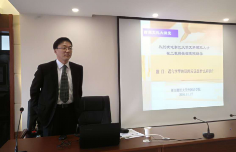 11月17日下午,浙江大学文科领军人才、浙江大学外国语学院博士生导师程工教授应邀来我院做了题为“语言学里的词库应该是什么样的”讲座,此次讲座是学院本学期开展的“学涯外语讲坛”的第三讲。讲座由黎昌抱院长主持,曹道根副院长、邵斌副院长以及学院教师和全体研究生参加了本次讲座。