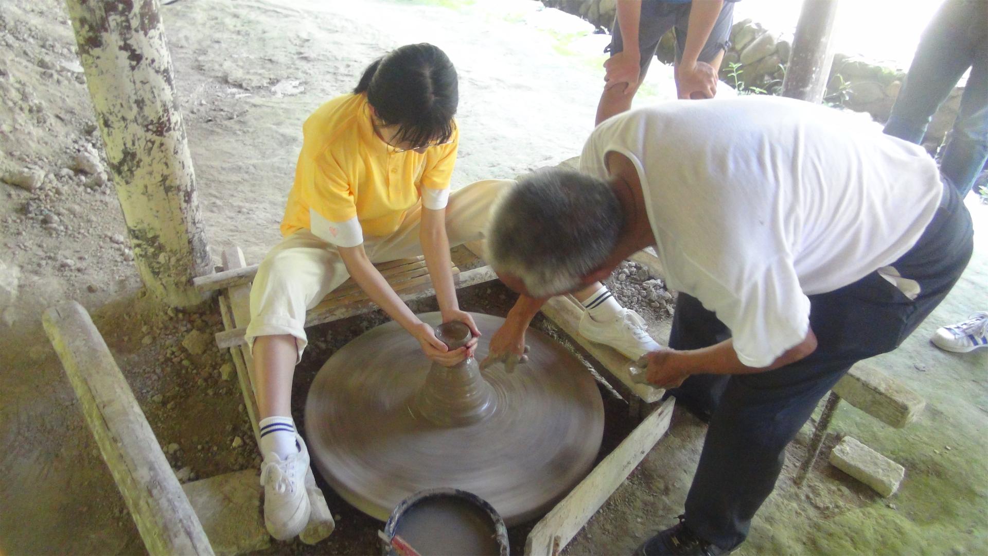 在结束访谈后,村长带领队员们欣赏了属于碗窑的标志性建筑:古庙戏台、古龙窑、八角楼等,更让队员们亲自体验了手工制陶的工艺。伴随着袅袅炊烟,我们的暑期社会实践团队在碗窑古村的访问也画上了句号。