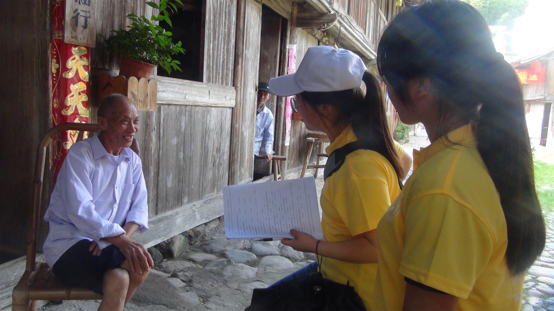 在7月10日的下午,实践团队又来到了与碗窑古村一样有着秀美风景的矴步头村。在当地非物质文化遗产继承人王大进先生的带领下,实践团队的队员们不仅领略了当地的自然风光,还就当地的生态环境、民生民情、基础设施等方面的问题进行了简单的问答。