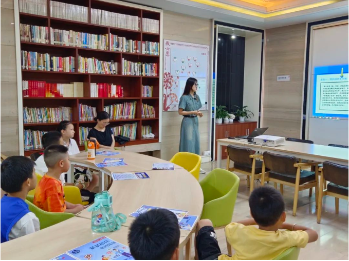 实践服务团进行的第一个环节是反诈宣讲,分别由刘奕蕃、沈舟、杨文健负责宣讲。在反诈有奖问答中,小朋友们的积极性明显高涨,纷纷举手回答抢答赢得小礼品。而在反诈知识宣讲中,小朋友们不仅听得很认真,还积极参与其中,说出自己对反诈的见解,同时也积极向“老师”提问,了解到更多反诈知识。从中我们也可以看出,小朋友们的反诈素养很高,在并未介绍过任何反诈知识前,他们已经可以熟练回答出各种诈骗有关的知识,由此可见,家长、学校和社区的反诈工作做在日常,效果突出。