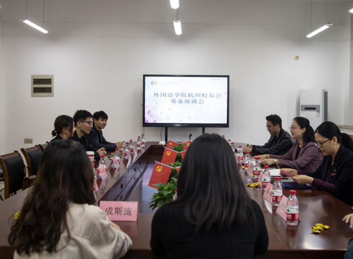 为进一步贯彻落实学校“校友名校”战略,进一步做好外国语学院杭州校友会的筹建工作,外国语学院杭州校友会筹备座谈会于11月7日下午在8-304会议室举行。学院党委书记王景、副书记李颂、原辅导员陈思佳,部分教师代表以及外国语学院杭州地区校友代表等二十余人参加座谈会。会议由党委副书记李颂主持。