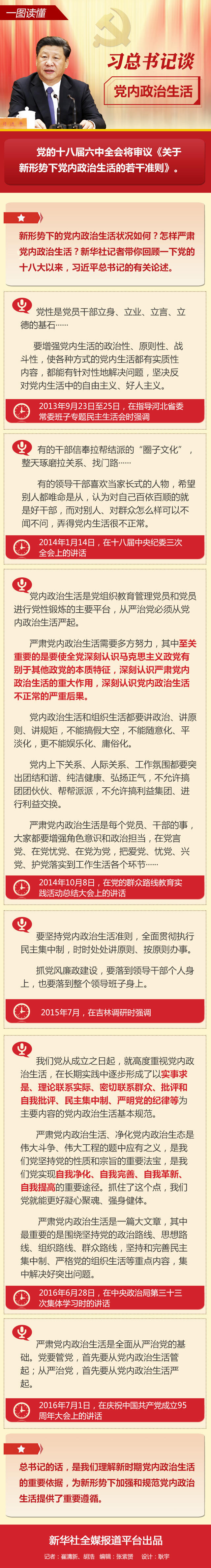 新形势下的党内政治生活状况如何?为什么要制定一部新形势下党内政治生活准则?怎样严肃党内政治生活?记者梳理了党的十八大以来,习近平总书记关于这些问题的论述。