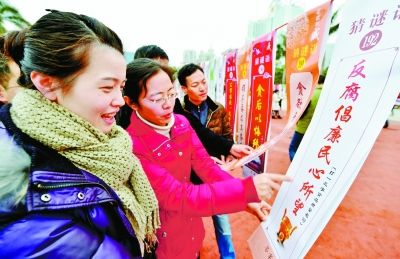 福州市民们在竞猜以廉洁为主要内容的谜语。 新华社发