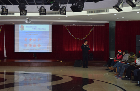 随着我校留学生数量的不断增加,留学生的交通安全问题也越来越受到校相关部门的重视。近日,我校国际学院联合保卫处针对留学生日常出行中存在的问题,专门邀请了下沙交警大队的陆东坡警官来我校为留学生作交通安全讲座。
