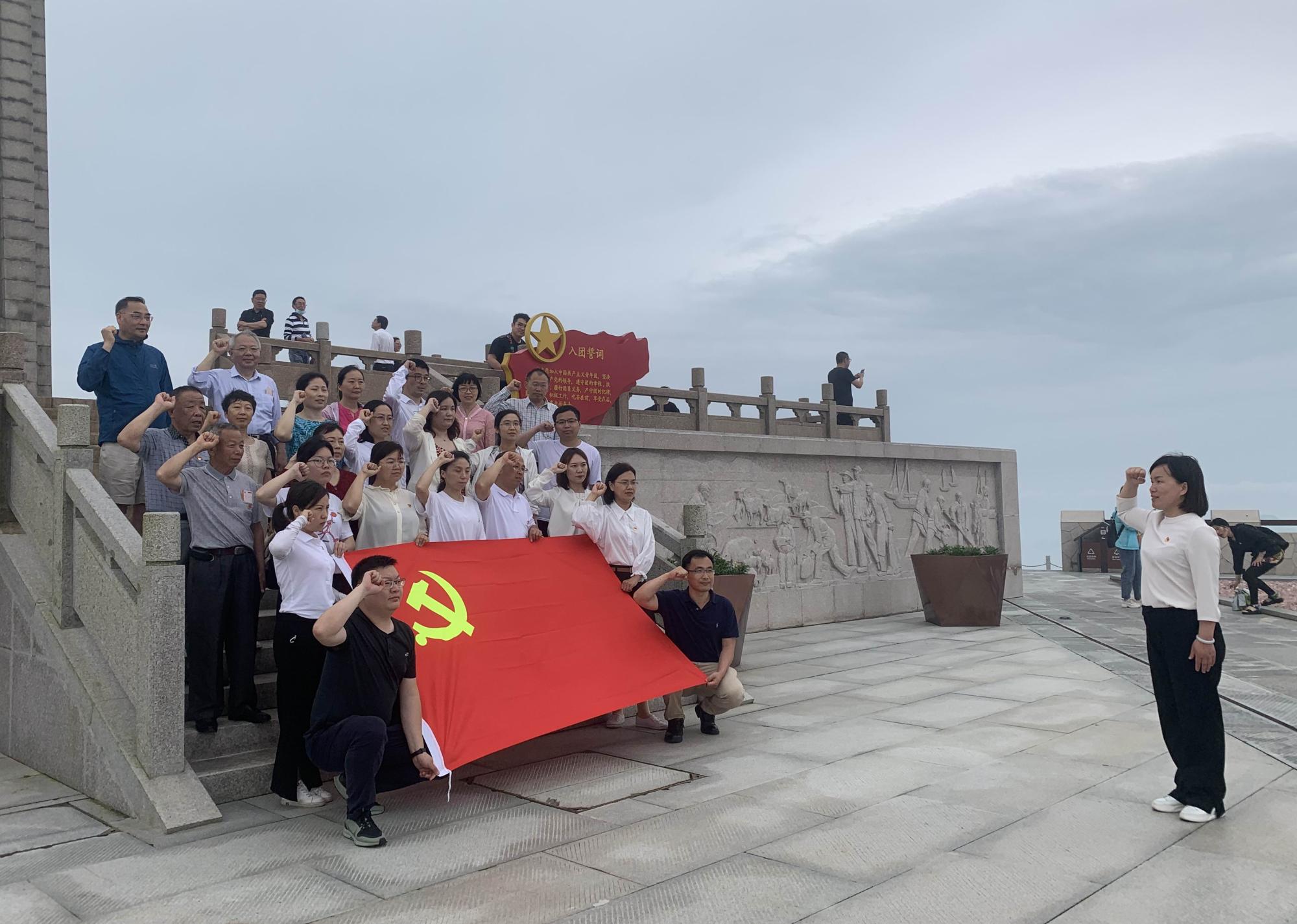 “我志愿加入中国共产党……”在纪念碑下党员们面对党旗,胸戴党徽,庄严地举起右手,重温了入党誓词,进一步领悟了党员的责任与使命。