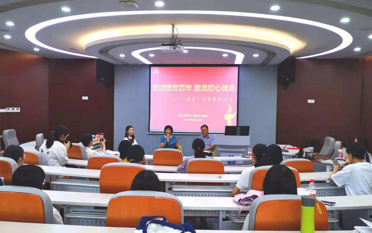 本网讯近日,会计学院举办“‘青春’与青春的对话”活动,邀请学院资深党员邵毅平和杨忠智为60余名青年党员讲述入党故事,引领青年党员“不忘来时路”,激励青年一代做时代新人,以实际行动庆祝建党100周年。