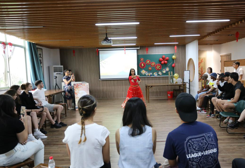 联欢会分为专题文化讲座、才艺展示和游戏互动等环节。月为题,思为媒。师生共颂静夜思,一起把水调歌头,红豆难忘有情水,翩翩起舞带衣袖,学涯清风满文华,再现盛唐箭入壶。文华书院,洋溢着欢声笑语,师生共载歌舞,共度中秋。线上,几百名留学生通过钉钉直播感受到了快乐以及来自学校遥远的祝福。他们一起哼着“月亮代表我的心”,表达着依依不舍。ZUFE对他们来说,很遥远,但一直在心间。