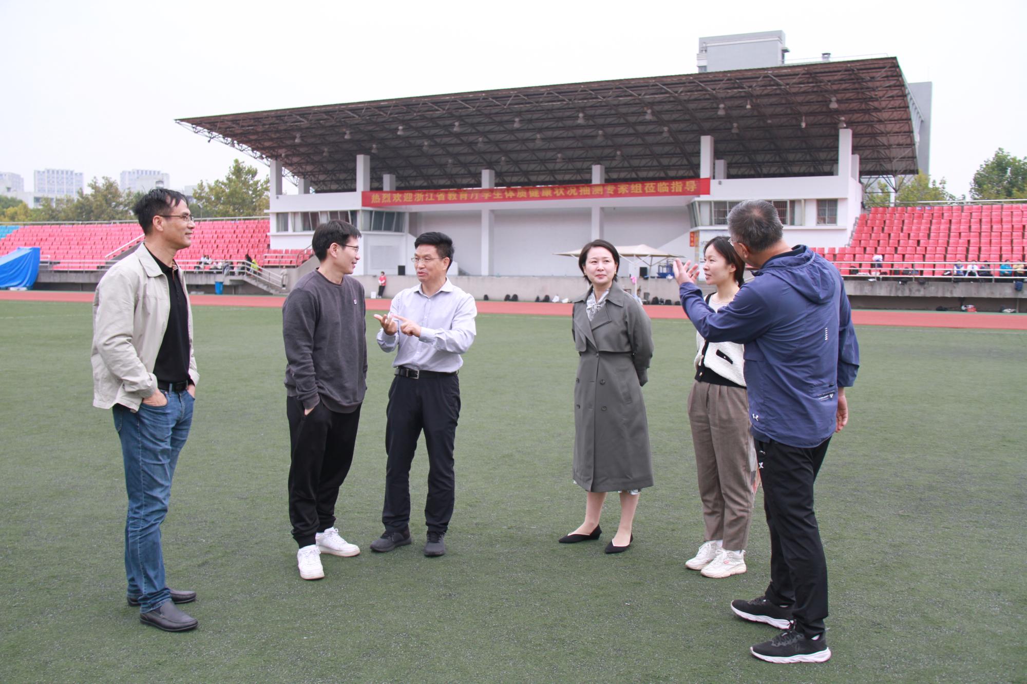 本网讯10月19日至20日,浙江省高校学生体质健康状况抽测专家组一行5人来校对2019级200名学生进行了现场抽测。副校长董进才到场检查指导测试工作。