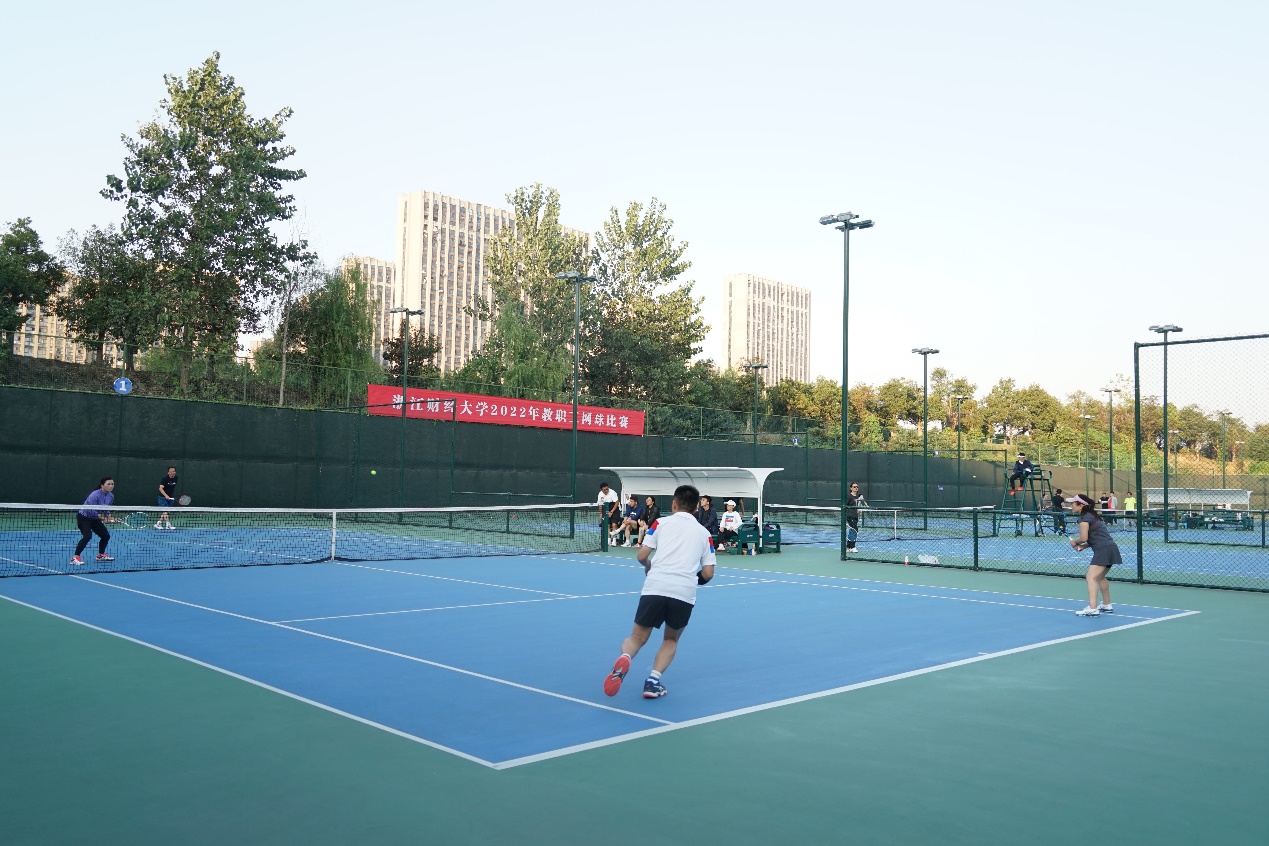 本网讯10月22日,2022年教职工网球比赛在下沙校区网球场火热开赛。校长钟晓敏、党委副书记余建森出席活动并颁奖。