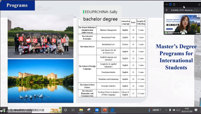 EGPC全球合作伙伴会议期间,学校参会代表与印尼、哈萨克斯坦、摩洛哥、尼日利亚等国家的海外代理商进行了十余场一对一线上洽谈,就留学生招生流程、考核标准、奖学金申请等问题进行了深入交流和研讨。中泰丝路教育联盟宣讲活动期间,国际学院负责人从办学特色、人才培养、特色专业及学科优势等方面进行了宣讲,并就留学生招生项目和留学生活动方面作了全方位介绍,在线学生反响热烈。
