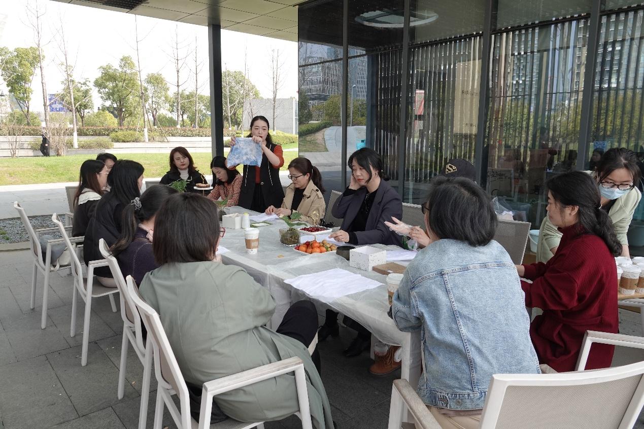女教师们一改平日里工作的快节奏,一边欣赏东湖诗意美景,一边静心感受古色古香中华传统文化韵味。有的在了解茶的基本知识后,通过洗杯、投茶、冲泡、倒茶演绎茶道之美,在袅袅茶香中享受悠然;有的充分发挥智慧与想象,通过叠、扎、浸、晾,静心体验扎染艺术的独特魅力,用巧手塑造一件独一无二的作品。