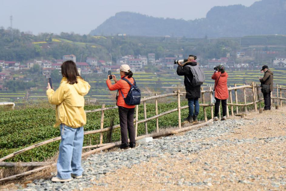 清明茶飘香,又到茶姑忙。在下岩贝村,老师们拍摄着勤劳的采茶女穿梭在茶园中,娴熟采摘春茶嫩芽的热闹景象。