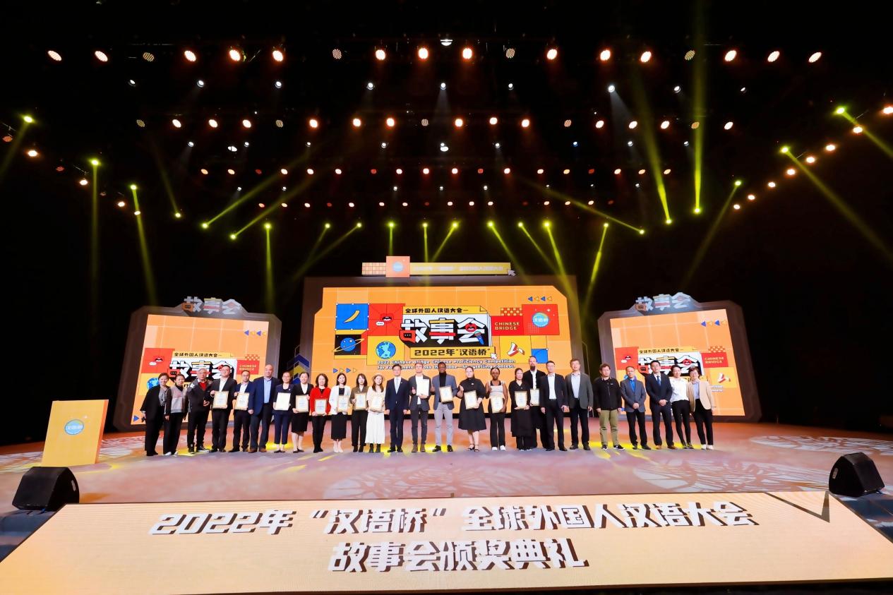 本网讯4月10日,2022年“汉语桥”全球外国人汉语大会故事会颁奖典礼在杭举行。学校荣获最佳组织奖。来自世界各国的参赛选手、指导老师、相关领域专家学者线上线下参加了颁奖活动。