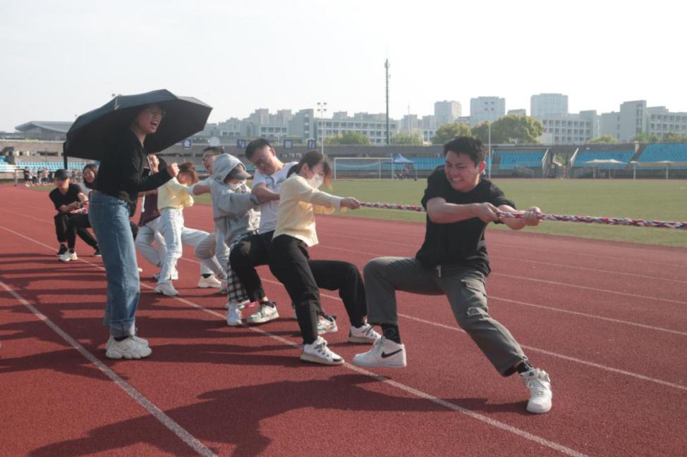 本次运动会分为单人、双人、多人和团体赛,涵盖“自行车慢骑”“心心相印”“四人五足”“拔河”等多个项目。选手们在比赛中奋力拼搏、力争佳绩,同学们的加油声、呐喊声此起彼伏,激烈、紧张而又欢乐的氛围充盈整个赛场。