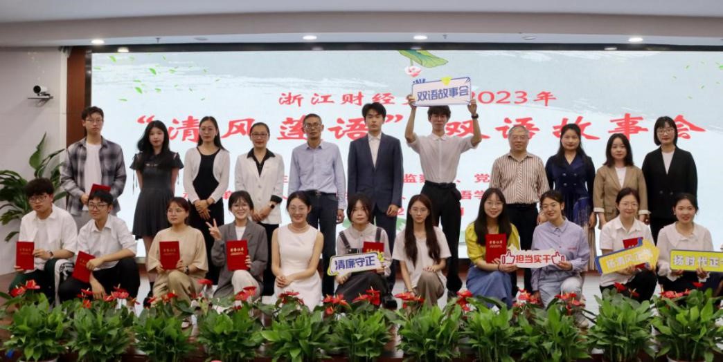 聆听清廉故事,诵读经典名篇,感悟清风正气。来自各学院的16位参赛选手围绕“以史为鉴,思齐自省”“以身作则,树立典范”“践行家风,传承精神”三个篇章,用汉语或英语讲述中外名人清廉故事、老一辈革命家红色清廉故事、清廉家风家训故事、校园身边人的清廉故事。言词铿锵有力、故事发人深省,是当代青年传承“清廉因子”、永葆清廉本色的深刻诠释,是浙财学子感悟砥廉哲理、传递崇廉之音的鲜活答卷。
