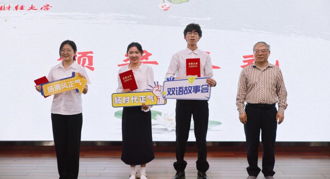 本网讯为全面贯彻落实党的二十大精神,进一步提升新时代廉洁文化的亲和力、吸引力、感染力,近日,学校举办“清风莲语”双语故事会。校党委委员、纪委书记孙旭东出席并为获奖选手颁奖。相关职能部门负责人及师生代表共计200余人观看比赛。