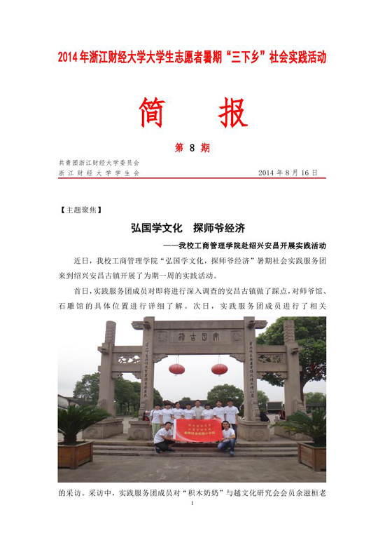 上一条:2014年“知行浙江”研究生社会调研活动简报第2期下一条:2014年暑期社会实践简报第7期