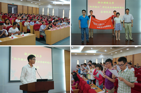 “知行浙江”研究生社会调研项目,是为了让广大研究生深入了解浙江省情、民情,培养研究生“知浙江,服务浙江”的责任感,发挥研究生在实践育人中的主动性和创造性而设立的社会实践计划。今年是开展社会调研活动的第一年,调研项目自5月份开始申报以来,各学院积极参与、广泛动员,在校内形成了良好的宣传氛围,掀起了研究生参与社会实践的热潮。期间,共有近70支团队申报这一项目,经过各学院选拔推荐和学校评审,最终确定了16支优秀团队予以立项,累计资助金额达8万元。
