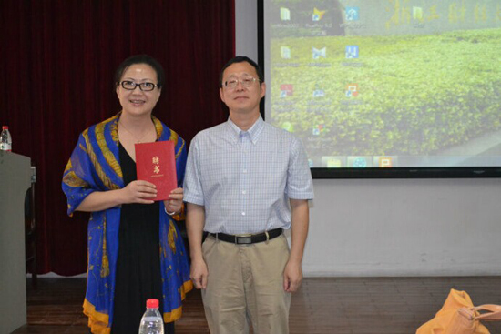 随后,举行了简短的聘任仪式。学院党总支副书记周君兴向李萍老师颁发了聘任证书,正式聘任其为数学与统计学院“吾•悦”大学生生涯发展教育工作中心顾问。