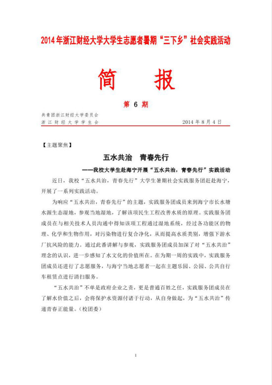 上一条:2014年“知行浙江”研究生社会调研活动简报第1期下一条:2014年暑期社会实践简报第5期