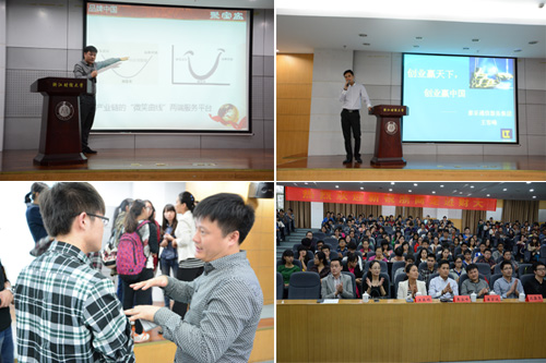 近日,由校团委和青年时报社共同举办的“‘科创沙龙’——与新锐浙商面对面”活动在学术报告厅开展。本次活动邀请到了浙江聚宝盆有限公司董事长潘宏波先生, 浙江泰乐通信技术有限公司董事长王容峰先生,顺丰速运集团杭州区人力资源部高级经理汪英娇女士。三位导师与同学们共同分享了创业的艰辛与快乐,鼓励学生积极投身到大学生创新创业活动中去历练自己。
