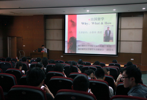 咨询会上,留联会负责人首先介绍了举办“Go Abroad”留学信息咨询活动的目的,主要是帮助有意向出国深造的师生了解留学的细则和技巧,做好留学规划。余慕鸿教授应邀作了题为“出国留学Why,What& How”的专题讲座,着重介绍了目前我校与国(境)外院校的合作情况及学生出国的相关手续及操作流程。
