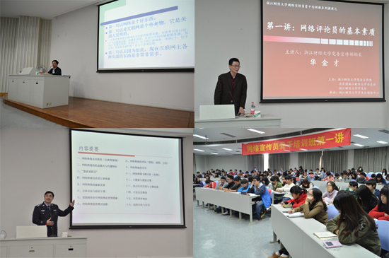 为深入贯彻落实党中央和习近平总书记有关指示精神,充分发挥高校共青团队伍优势,动员团学干部、青年学生力量在互联网上大力倡导社会主义核心价值观,弘扬网络主旋律,4月下旬至5月中旬,由校党委宣传部、校团委主办的我校网络宣传员骨干培训班顺利举行。培训班邀请到了团省委学校部部长陈继胜、校党委宣传部部长华金才和浙江警官职业学院孙培梁副教授前来授课。