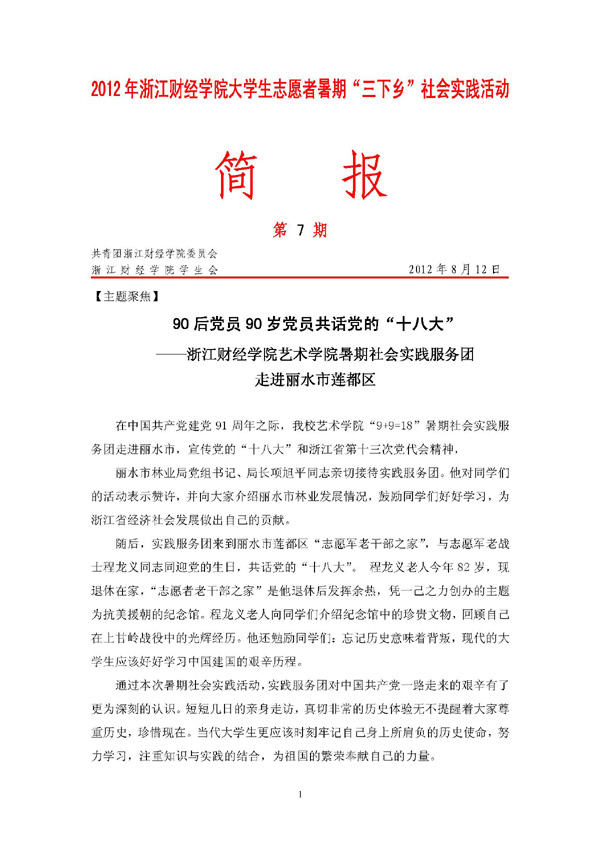 上一条:2012大学生暑期社会实践活动简报(8)下一条:2012大学生暑期社会实践活动简报(6)