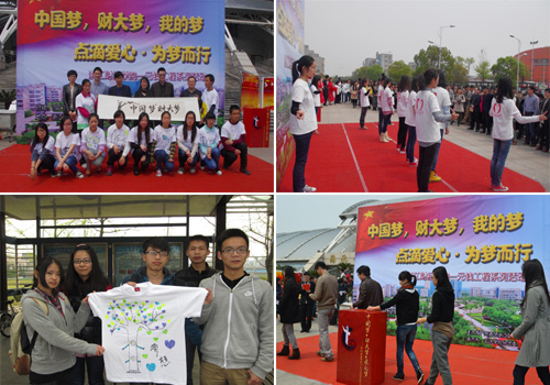 本次“中国梦,财大梦,我的梦:点滴爱心,为梦而行”一元钱工程系列活动,以梦想导航,爱心支撑,立足校园,走向社会。活动在同学们《中国梦,这么近那么远》《梦想,和你一样》的演讲和手语表演中开始,把握每一个“我的梦”,才是真正实现“中国梦”。同时,在文化长廊,各二级学院开展了手绘文化衫活动,为梦添彩、为爱护航。来自各学院的11位梦想大使上台一一发表励志宣言,从励志感悟寻访圆梦征程。梦想大使与现场嘉宾共同打开了梦之轴画卷,添上最后的点睛之笔。仪式虽告一段落,但是梦想不会停息,正能量还在传递,一元钱工程始终伴随你我。