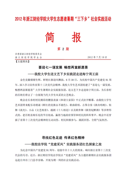 上一条:2012年大学生志愿者暑期“三下乡”社会实践活动简报(3)下一条:我校圆满完成2012年“三位一体”综合评价招生录取工作
