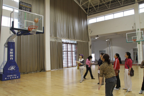 进入东操场,首先看到的是已进入白热化的跳长绳比赛。很多教职工一身运动装准备充分,大家互相打气加油,为团队的荣誉而战。“加油,注意绳子甩的时候的节奏。”可以看出,大家为了比赛胜利都卯足了劲,也充分运用技战术,体现了拼搏的体育精神。另一块场地上的踢毽子等个人挑战项目正在进行,起起落落的羽毛毽子被教职工们踢出各式花样来,一旁的跳绳、飞镖、投篮等项目也如火如荼进行着,大家的参与热情都很高涨。