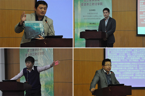 杭州联建餐饮管理有限公司总经理王建明和在座同学分享了他将菜肴“从基地带到餐桌”的创业过程;杭州江滨水产有限公司总经理周林君就他作为农村兴业带头人的个人经历缓缓道来;创业大学生村官代表、杭州新康果蔬专业合作社理事长、萧山区河庄街道民主村村委会主任来燕军,从一名普通的大学生村官做起,诚信待人,帮助村民共同富裕,在考上公务员之后毅然选择扎根农村,富裕农民;曾被杭州日报头版“发现最美杭州人”专题报道,杭州市农村青年兴业带头人协会会员、杭州易沙网络开发有限公司总经理尚贞涛用朴实平和的话语和平易近人的态度讲述了其创业故事和心路历程,其“成功的第一要素就是帮助别人”情真意切,感人至深。