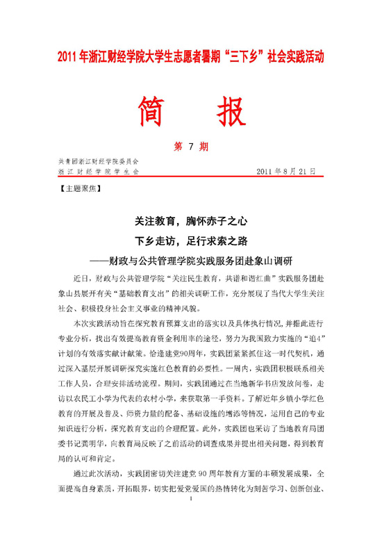 上一条:2011年暑期社会实践简报第8期下一条:2011年暑期社会实践简报第6期