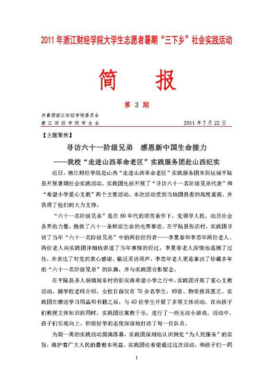 上一条:我校“两项计划”志愿者出征下一条:2011年暑期社会实践简报第2期