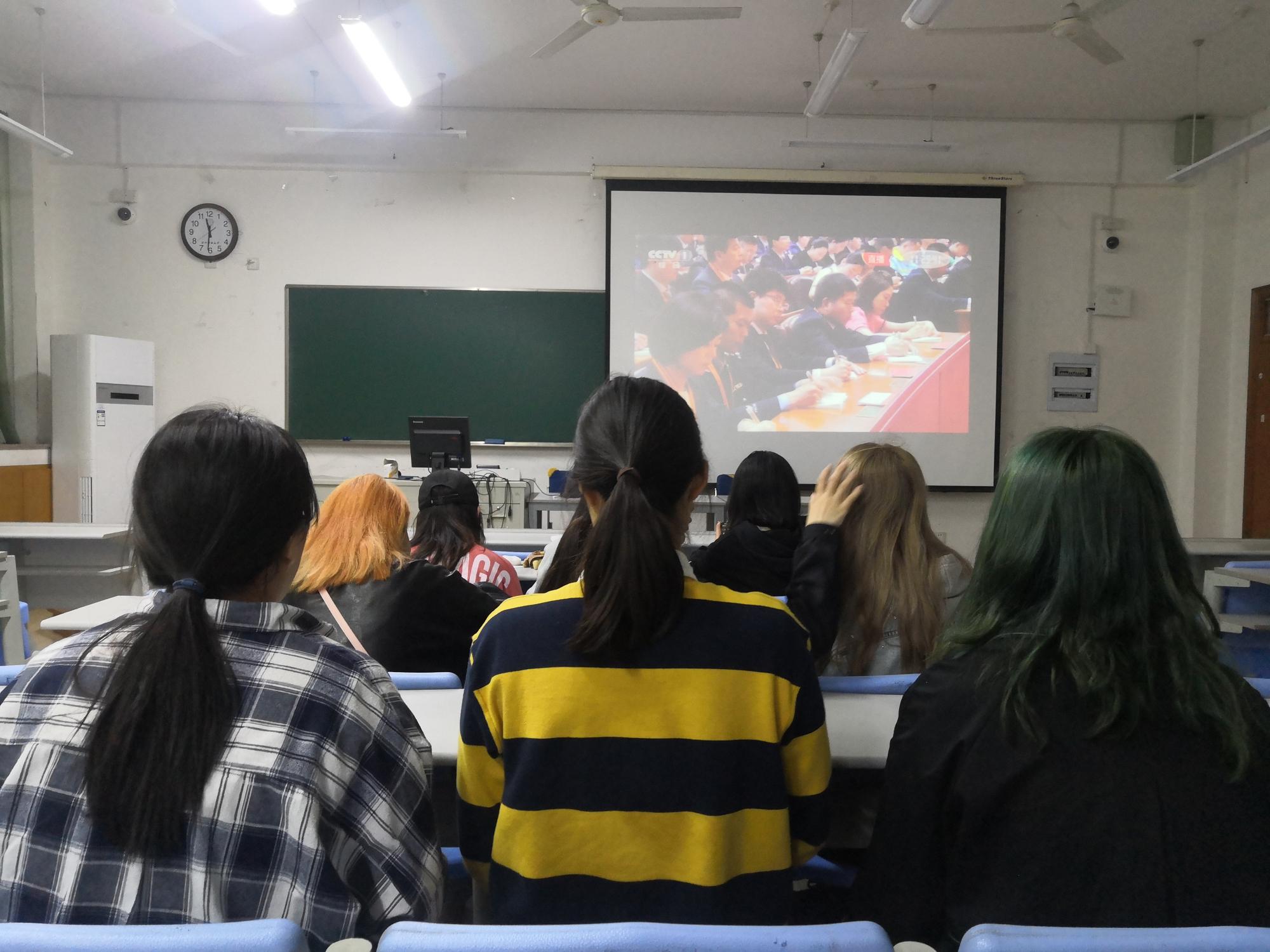4月30日上午10:30,学院楼107多媒体教室,艺术学院组织广大团员青年、团干部和党员集中观看纪念五四运动100周年大会直播,认真学习习近平总书记在纪念五四运动100周年大会上的重要讲话。