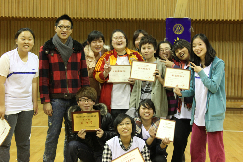 12月3日晚,2010浙江财经学院篮球锦标赛女子组决赛在观众的加油声中拉开了帷幕。艺术学院代表队通过前几个轮的努力拼搏,杀入了总决赛,对手是颇具实力的会计学院代表队,经过一场精彩的比赛,艺术学院代表队顽强拼搏、赛出了风格和水平,最终荣获2010浙江财经学院篮球锦标赛女子组冠军。