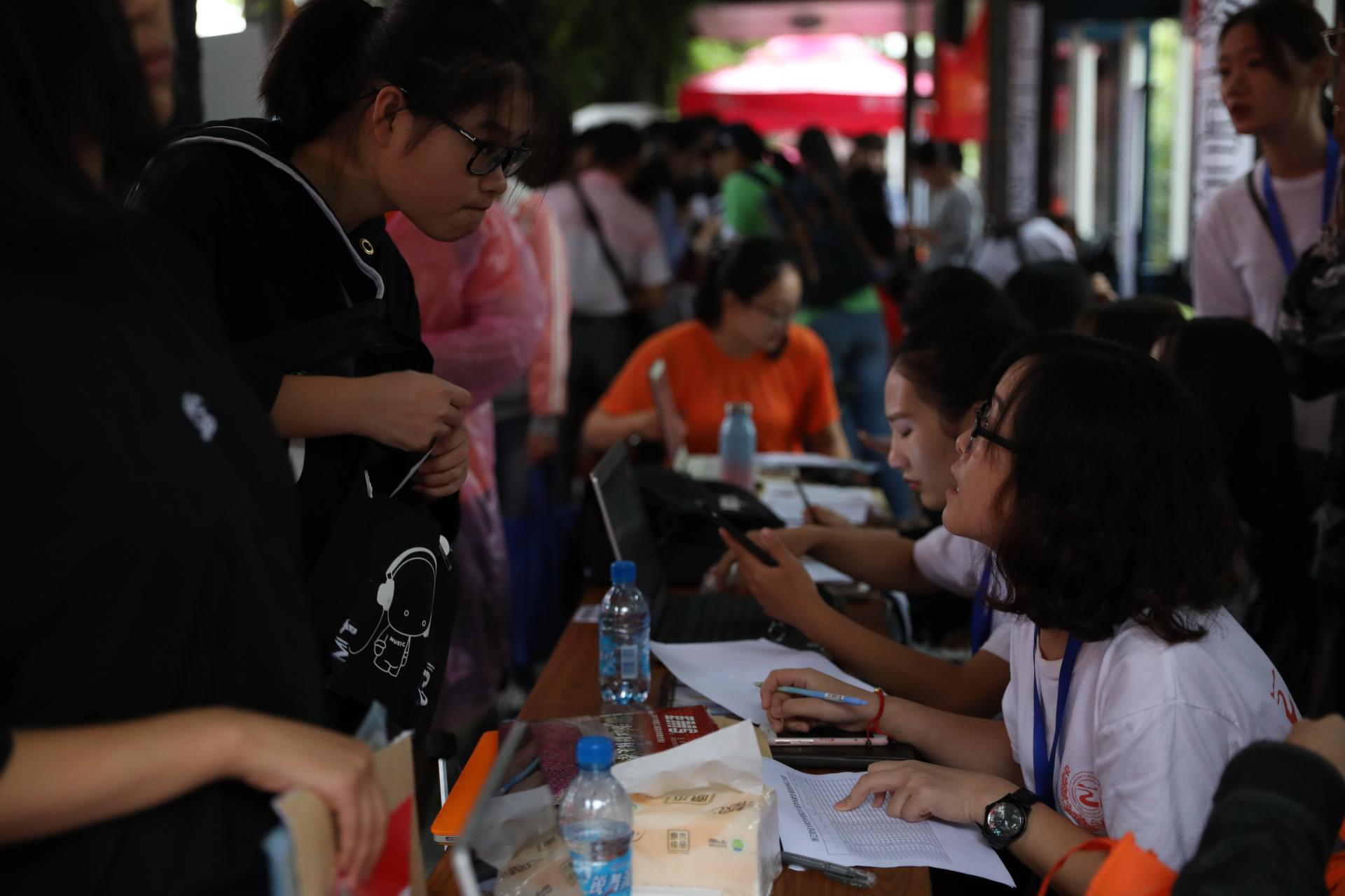 为做好迎新工作,学院学生会、新生班助、志愿者组成了一个迎新服务团,帮助新生们完成注册,领取新生“大礼包”,以及入住宿舍等工作。为确保迎新工作高效有序的进行,早上六点钟,下着淅淅沥沥的秋雨,迎新服务团的同学们冒雨来到迎新地点进行布置,半个小时后全部迎新队伍便已全部到齐“严阵以待”。8点钟,新生陆陆续续前来报到,班助们尽职尽责,新生报到确认、新生报到系统检录、校园卡等材料领取及住宿通知单发放都在最短时间完成,简化入学手续,为新生报到带来了极大的便利。