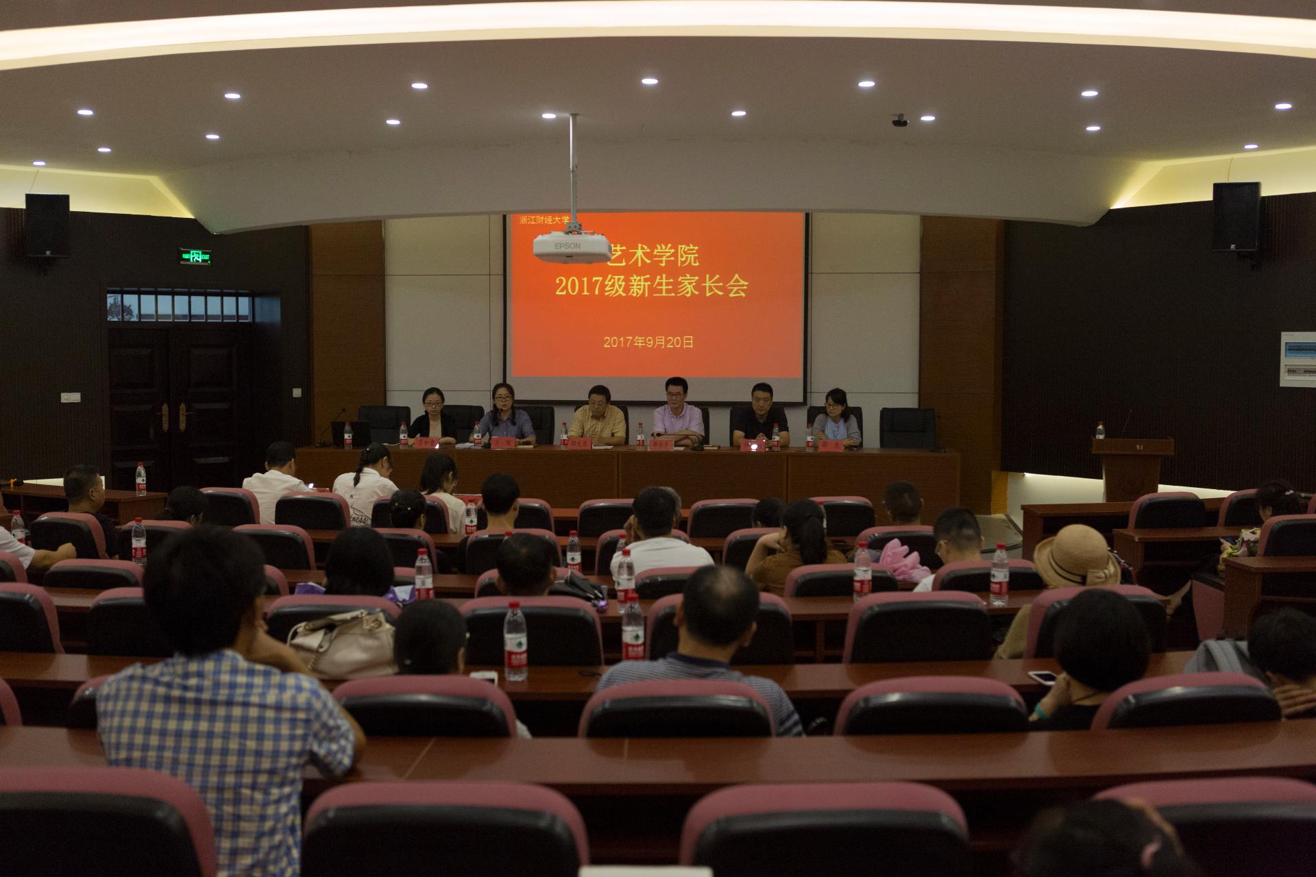 下午2点10分,2017级新生新生家长会在艺术学院楼112报告厅召开,艺术学院院长邵大浪、党委书记华金才、党委副书记方咏、副院长林洲、各专业系主任、辅导员和新生家长们共同出席了本次新生家长会。