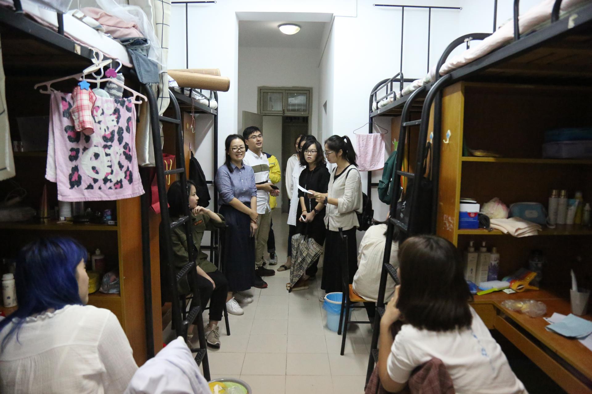 晚上,院党委副书记方咏、院团委书记陈宝明和新生辅导员李靓老师走访了新生寝室,看望新生,提醒新生注意用电安全、注意防骗和做好寝室卫生等事项。