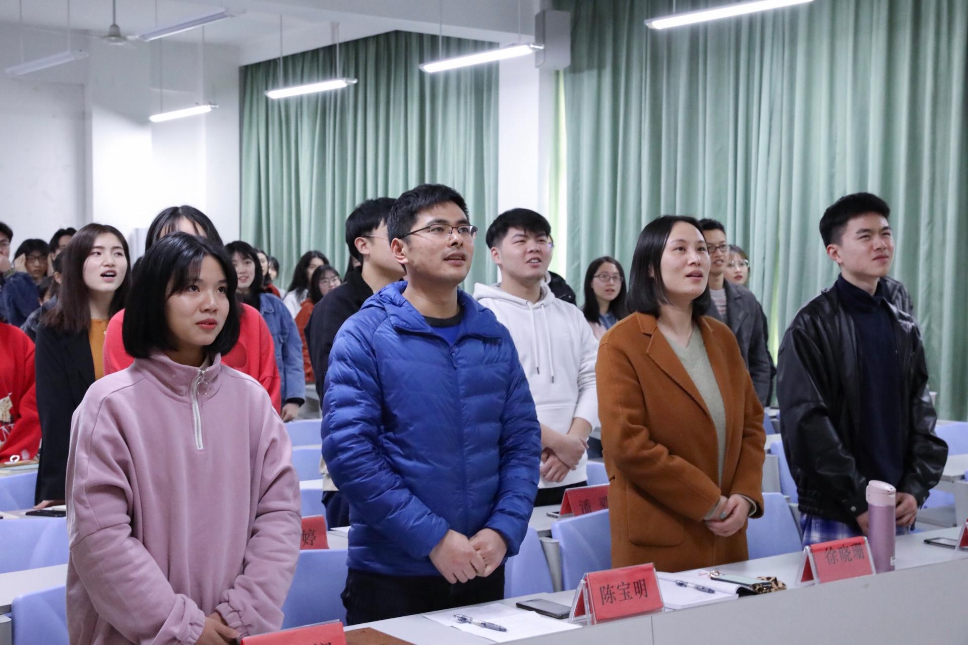 大会最后,全体师生起立合唱《我和我的祖国》。在动情的歌声中,主持人宣布本次“马克思主义理论学习交流会”成立大会圆满结束,希望所有人记住这一刻,让我们在马克思主义理论的探索中扬帆而行,打造一个与众不同的学生社团。