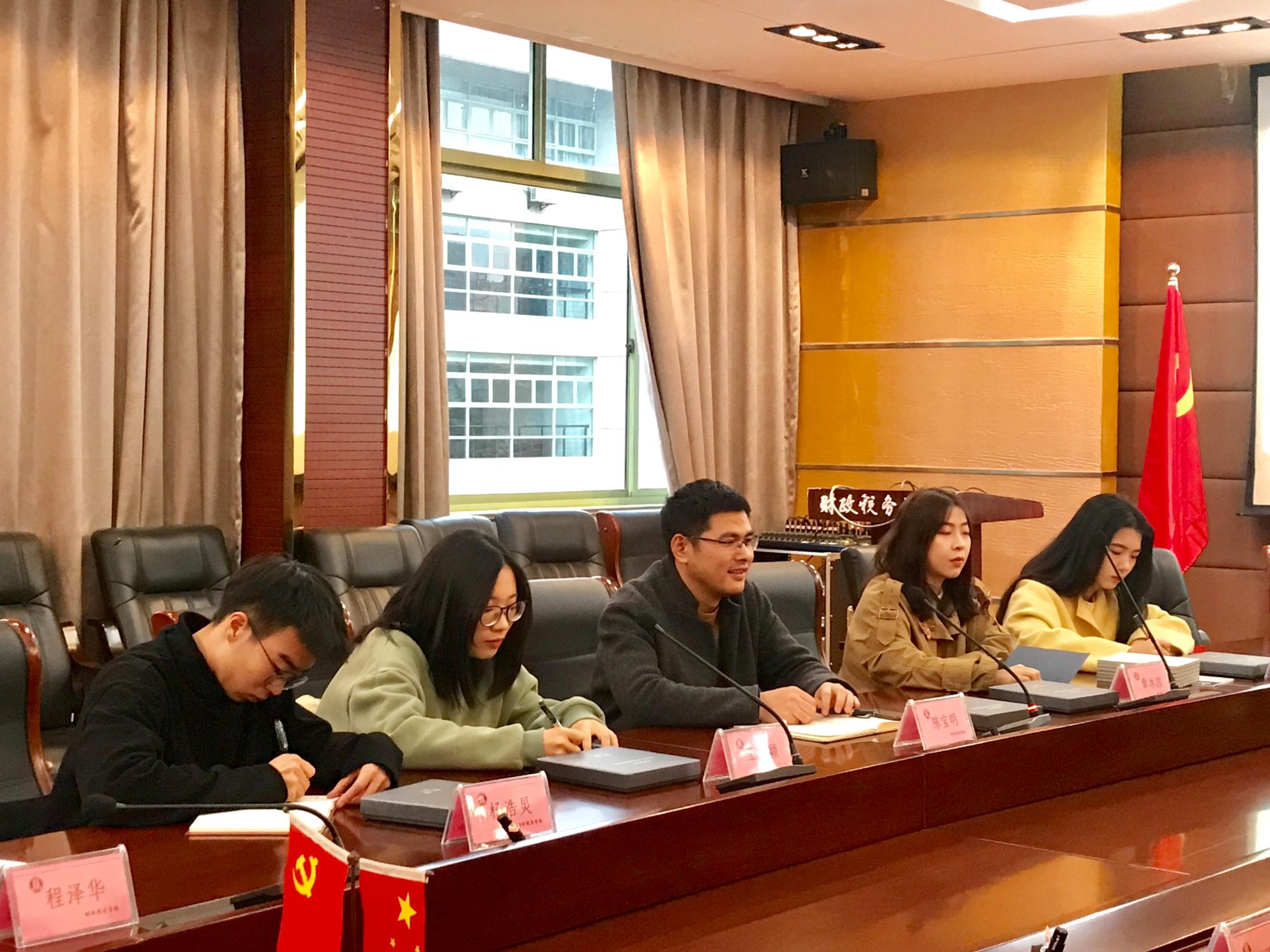 会议伊始,财政税务学院团委书记毕岩智对我们的到来表示热烈的欢迎,介绍了到场参会人员并简单介绍了学院团学工作概况,我院团委书记陈宝明表达了此次交流的目的和期待。
